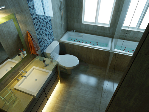 衛生間面積過大,很多人可能就會想大空間大容量,可以精細的裝修下,精細固然沒錯,可是我們不能忽略了衛生間本省的功能特點,非要把衛生間打造成主臥室甚至客廳的效果,那樣反而不倫不類了。衛生間面積達15平方米:設計師采用簡約現代風格,色彩以純白色及深色系中的褐色為主,使衛生間打破一個主燈的沉悶設計,而采用分散、柔和的燈光避免了過分的單調,突空間顯層次感,使空間在視覺上營造出立體感。米色面磚與瓷白的潔具搭配,充滿了勃勃生機,含蓄中又帶直白。 合肥衛生間裝修設計 類型2:面積小且狹長的衛生間增加通透性